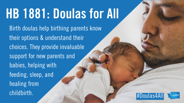 Doulas For All is a Queer, Trans, Black, Indigenous and People of Color (QTBIPOC) led coalition by Surge Reproductive Justice toward Medicaid reimbursements for birth doulas. During the 2022 Washington State legislative session, the coalition wrote, lobbied, and passed ESHB 1881 - a bill to establish birth doulas as a profession in Washington state, making the reimbursements possible.